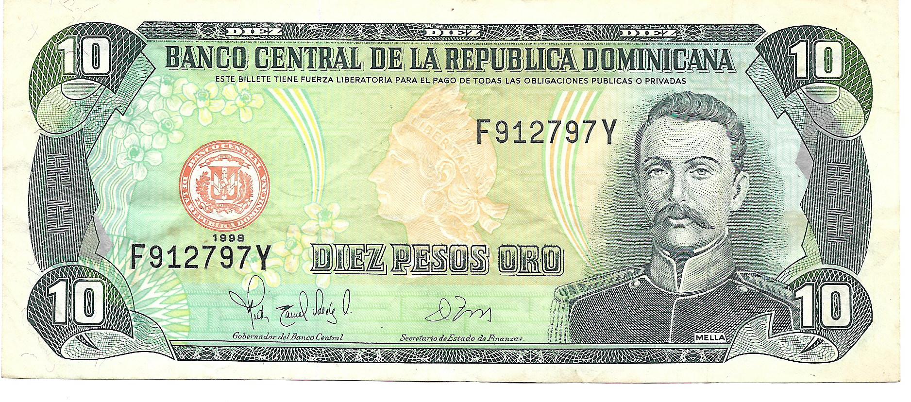 Republica Dominicana 10 Pesos Oro 1998 P153a MB