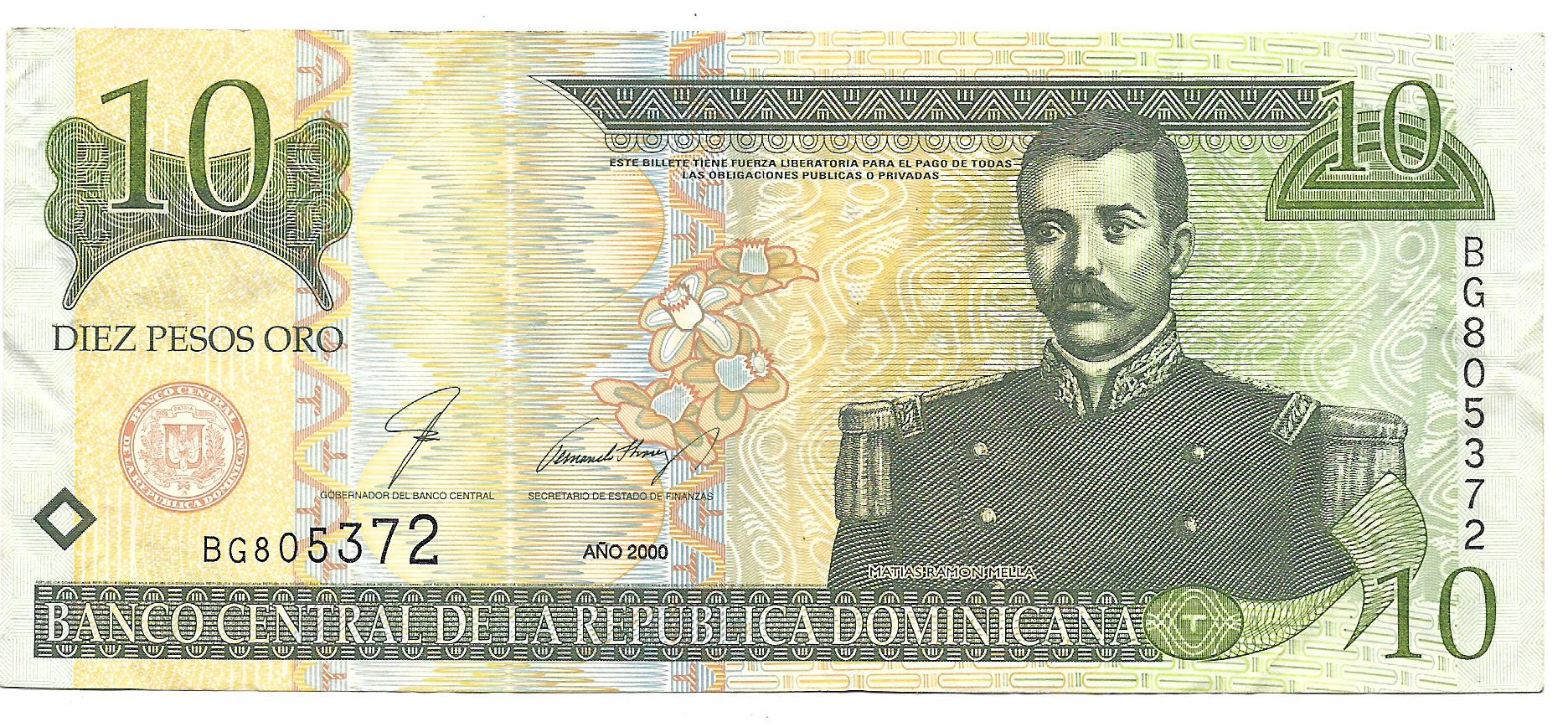 Republica Dominicana 10 Pesos Oro 2000 P159a EXC-