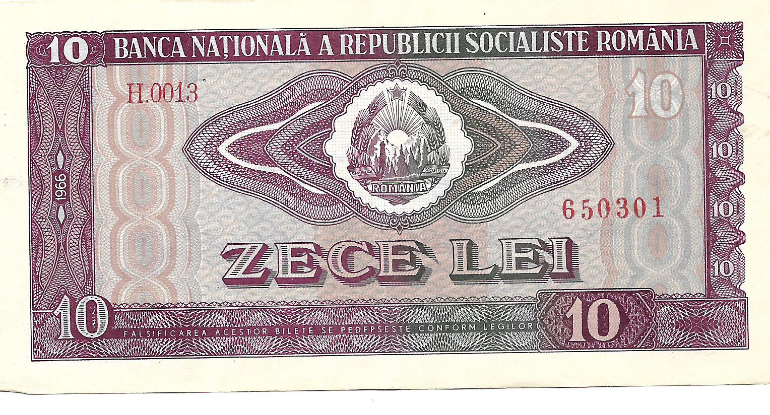 Rumania 10 Lei 1966 P94 EXC- cantidad