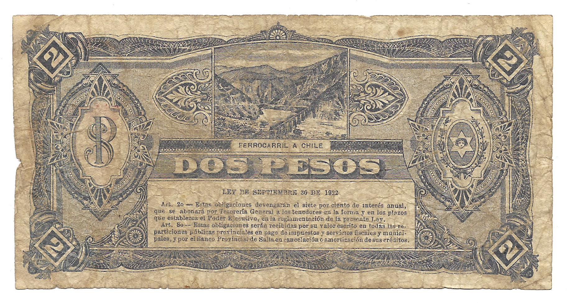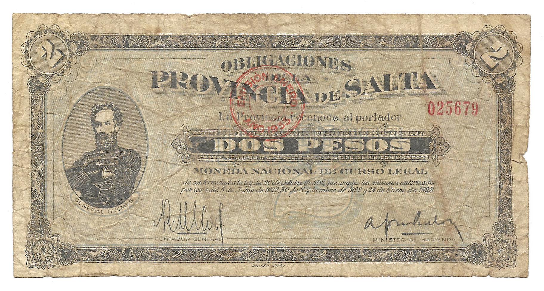Salta 2 Pesos 1932 resello rojo 1933 S2143 B+