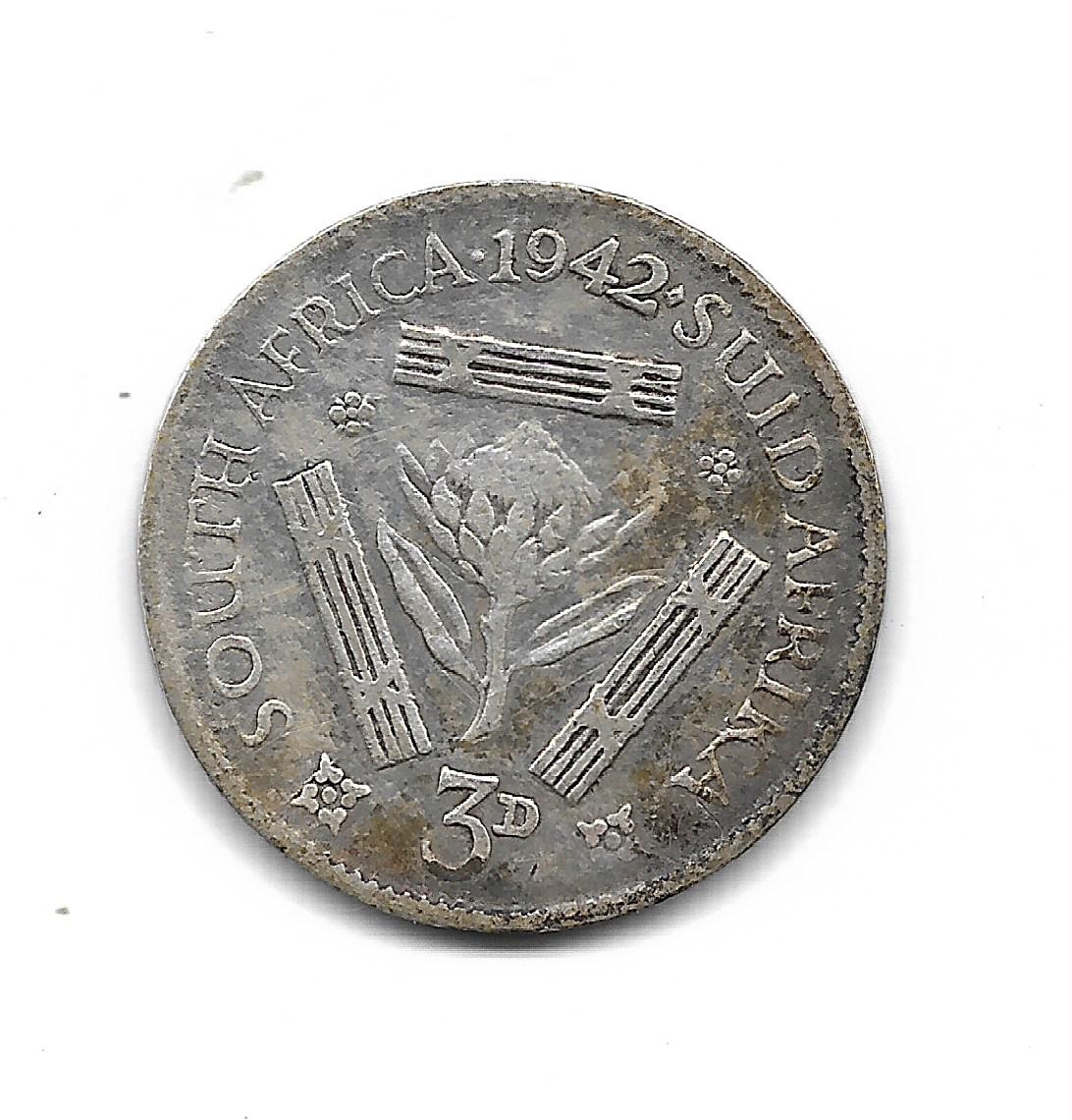 Sudafrica Bajo Gran Bretaña 3 Pence de Plata 1942 KM26 MB