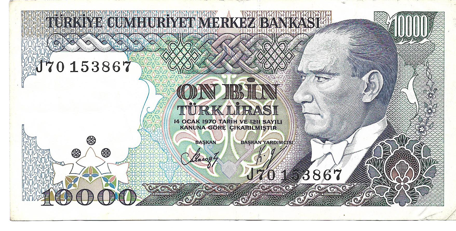 Turquia 10000 Liras 1970 P199 EXC cantidad