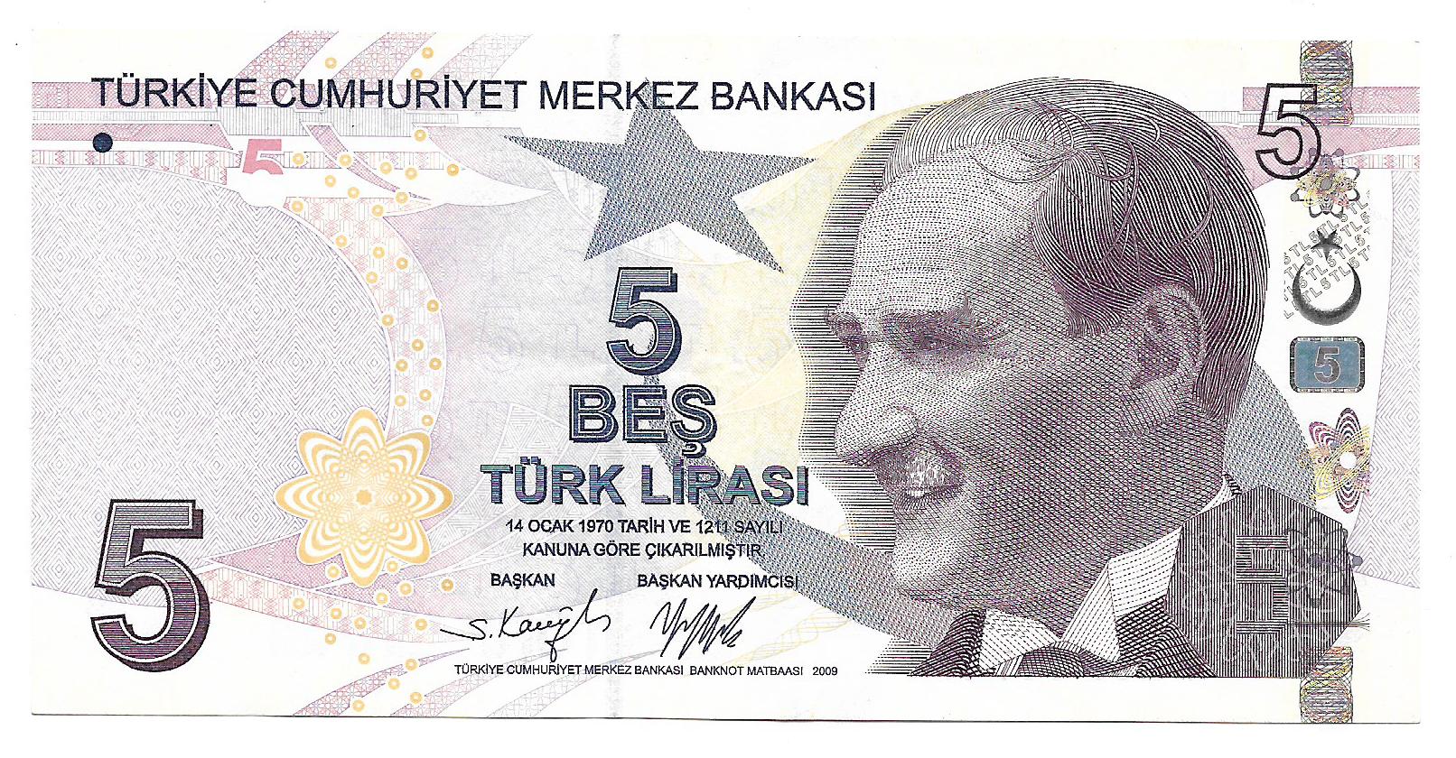 Turquia 5 Liras 2009 P222bc EXC+