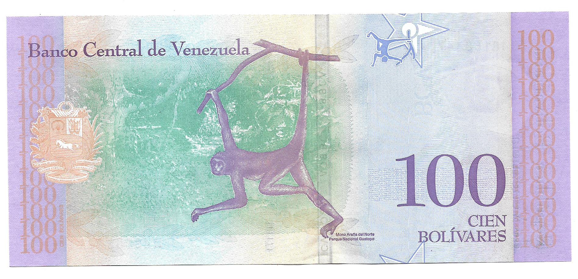 Venezuela 100 Bolivares 2018 Mono Araña P106 SC