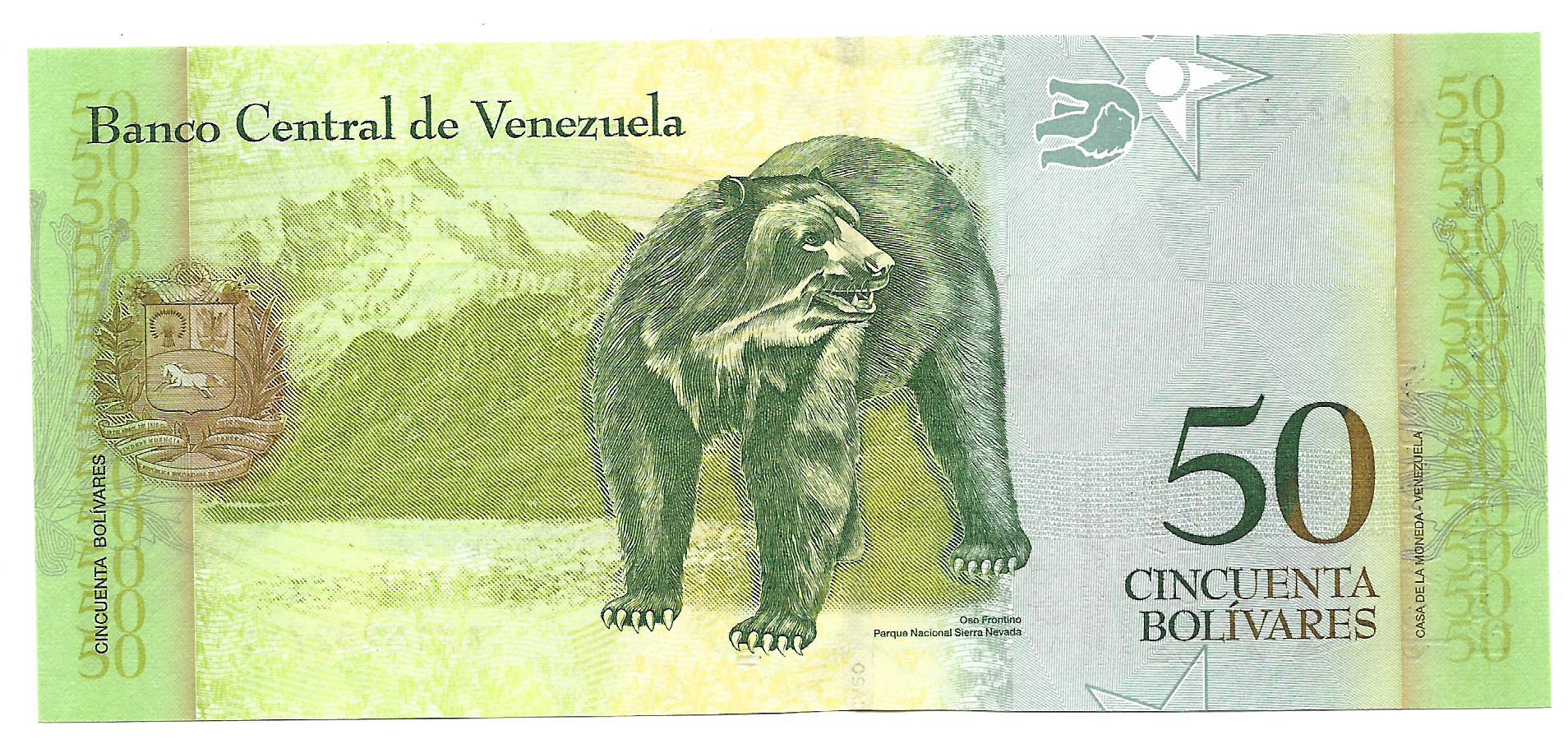 Venezuela 50 Bolivares 2015 Oso Frontino P92k SC cantidad