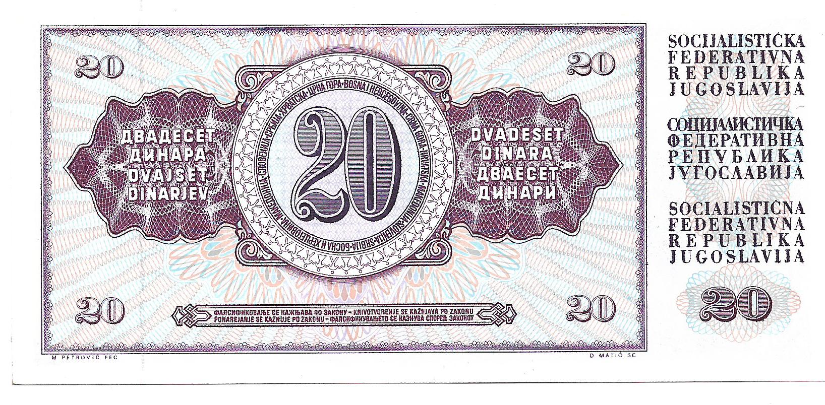 Yugoslavia 20 Dinara 1978 P88a SC