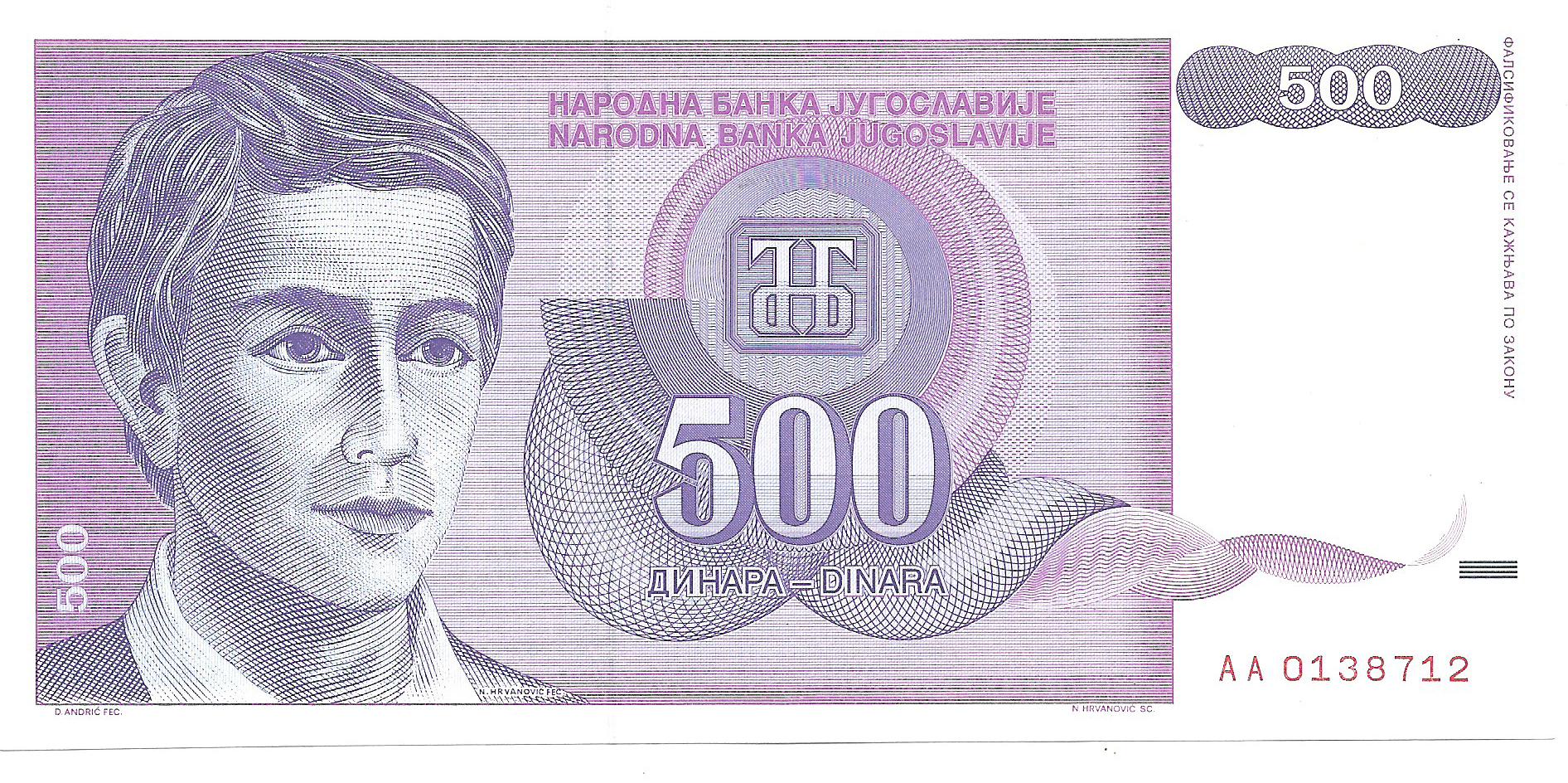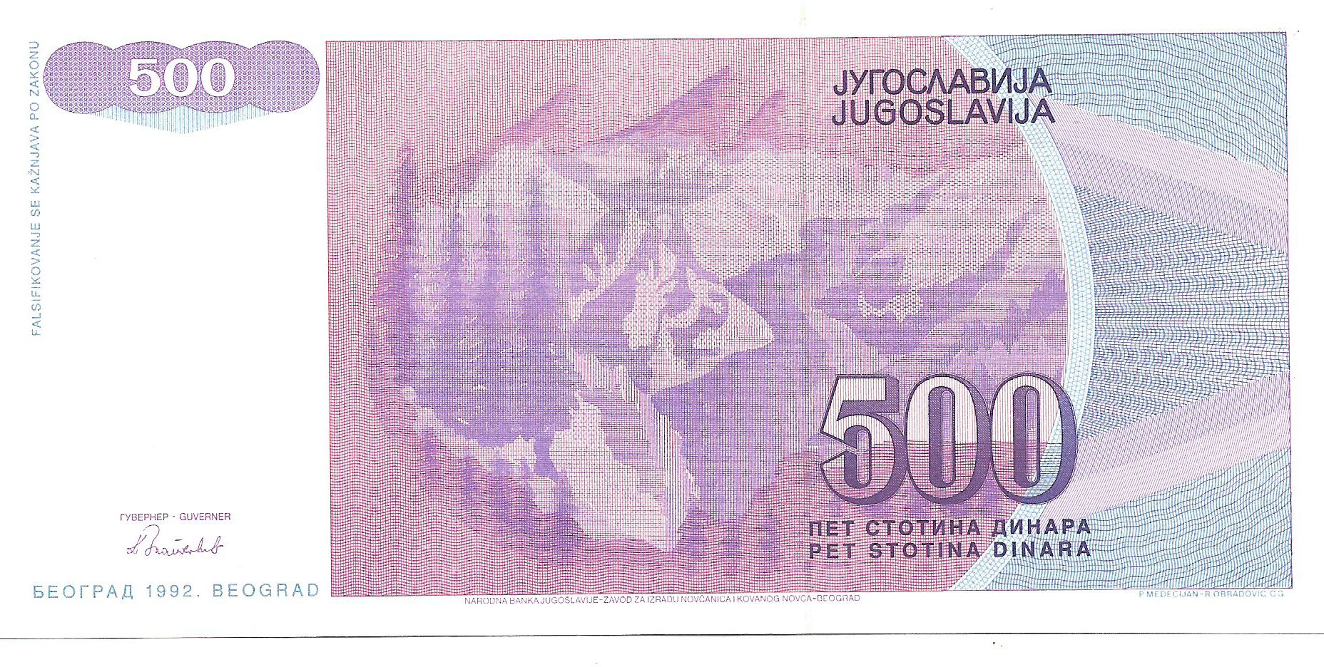 • Yugoslavia 500 Dinara 1992 P113 SC